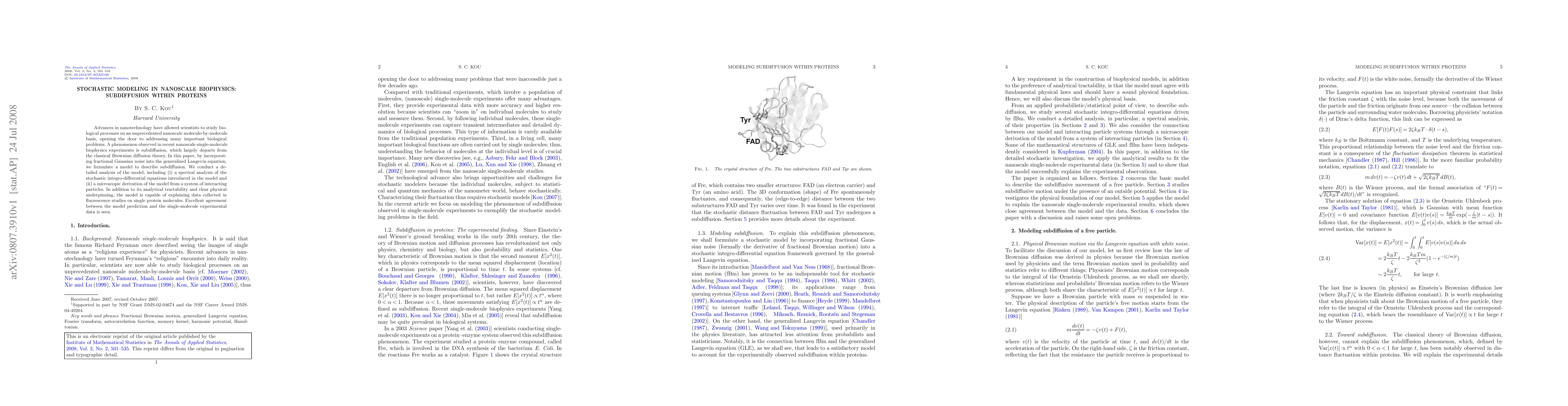 Advances in nanotechnology have allowed scientists to study biological processes on an unprecedented nanoscale molecule-by-molecule basis, opening the door to addressing many important biological problems. A phenomenon observed in recent nanoscale single-molecule biophysics experiments is subdiffusion, which largely departs from the classical Brownian diffusion theory. In this paper, by incorporating fractional Gaussian noise into the generalized Langevin equation, we formulate a model to describe subdiffusion. We conduct a detailed analysis of the model, including (i) a spectral analysis of the stochastic integro-differential equations introduced in the model and (ii) a microscopic derivation of the model from a system of interacting particles. In addition to its analytical tractability and clear physical underpinning, the model is capable of explaining data collected in fluorescence studies on single protein molecules. Excellent agreement between the model prediction and the single-molecule experimental data is seen.