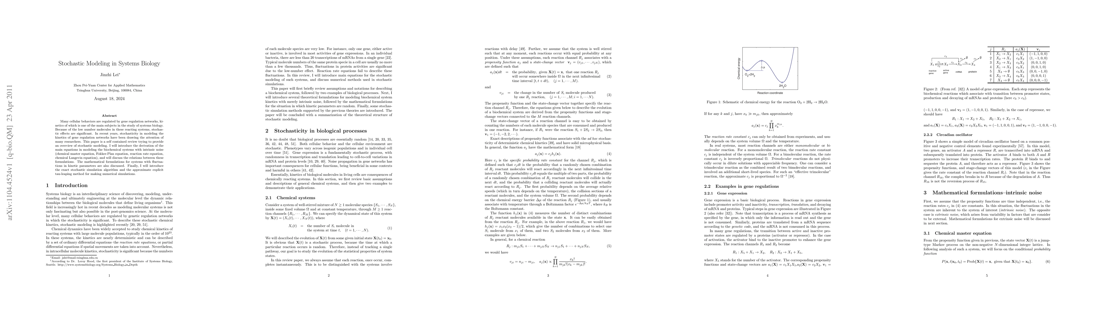 This paper provides a comprehensive review of stochastic modeling in systems biology, focusing on the kinetics of gene regulation networks. It covers the derivation and relationships between key mathematical formulations, including the chemical master equation and the Fokker-Planck equation, and discusses numerical simulation methods like the exact stochastic simulation algorithm and the tau-leaping method.