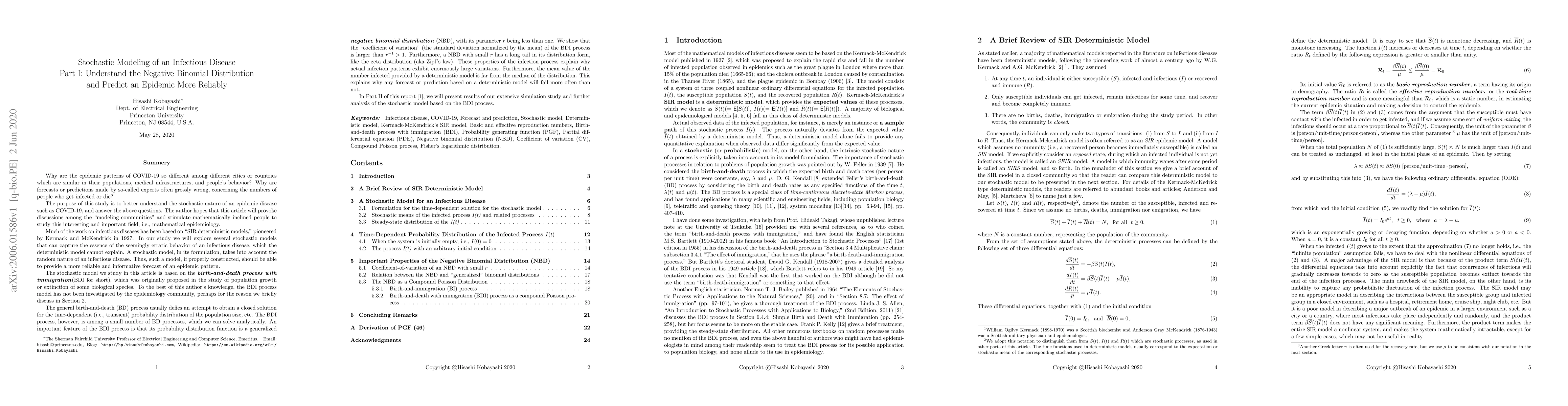 Why are the epidemic patterns of COVID-19 so different among different cities or countries which are similar in their populations, medical infrastructures, and people's behavior? Why are forecasts or predictions made by so-called experts often grossly wrong, concerning the numbers of people who get infected or die? The purpose of this study is to better understand the stochastic nature of an epidemic disease, and answer the above questions. Much of the work on infectious diseases has been based on "SIR deterministic models," (Kermack and McKendrick:1927.) We will explore stochastic models that can capture the essence of the seemingly erratic behavior of an infectious disease. A stochastic model, in its formulation, takes into account the random nature of an infectious disease. The stochastic model we study here is based on the "birth-and-death process with immigration" (BDI for short), which was proposed in the study of population growth or extinction of some biological species. The BDI process model ,however, has not been investigated by the epidemiology community. The BDI process is one of a few birth-and-death processes, which we can solve analytically. Its time-dependent probability distribution function is a "negative binomial distribution" with its parameter $r$ less than $1$. The "coefficient of variation" of the process is larger than $\sqrt{1/r} > 1$. Furthermore, it has a long tail like the zeta distribution. These properties explain why infection patterns exhibit enormously large variations. The number of infected predicted by a deterministic model is much greater than the median of the distribution. This explains why any forecast based on a deterministic model will fail more often than not.