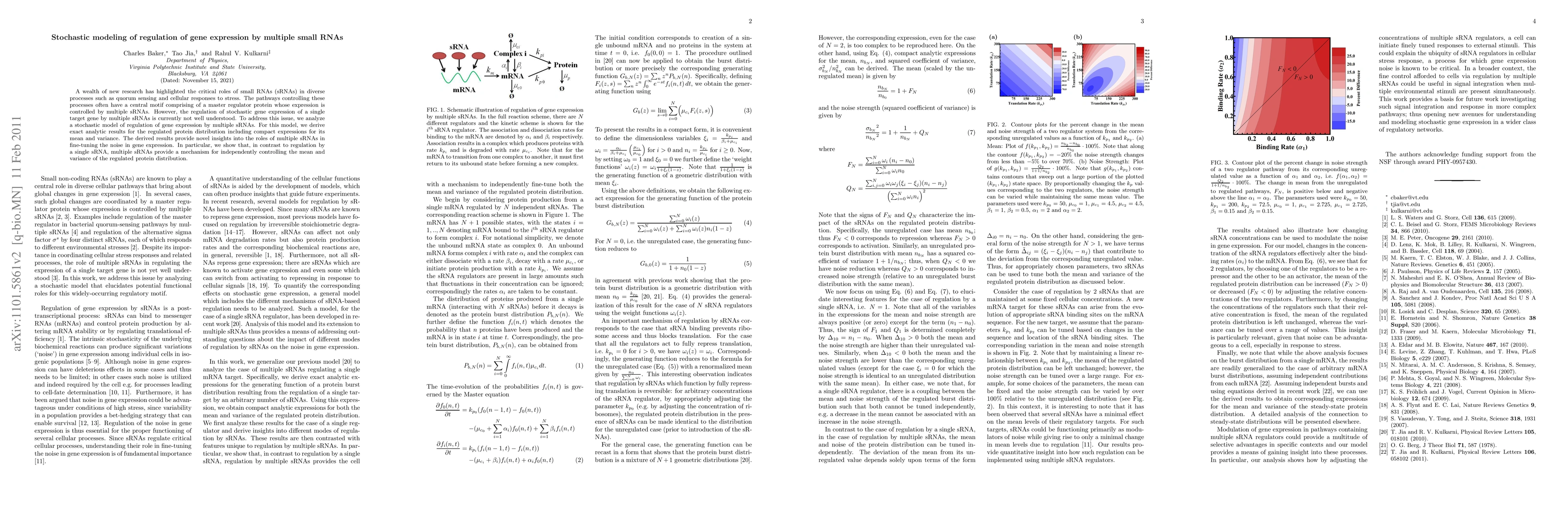 This paper develops a stochastic model to understand how multiple small RNAs regulate gene expression, deriving exact analytic results for the regulated protein distribution. It reveals that unlike a single small RNA, multiple small RNAs can independently control both the mean and variance of the protein expression, providing insights into their role in fine-tuning gene expression noise.