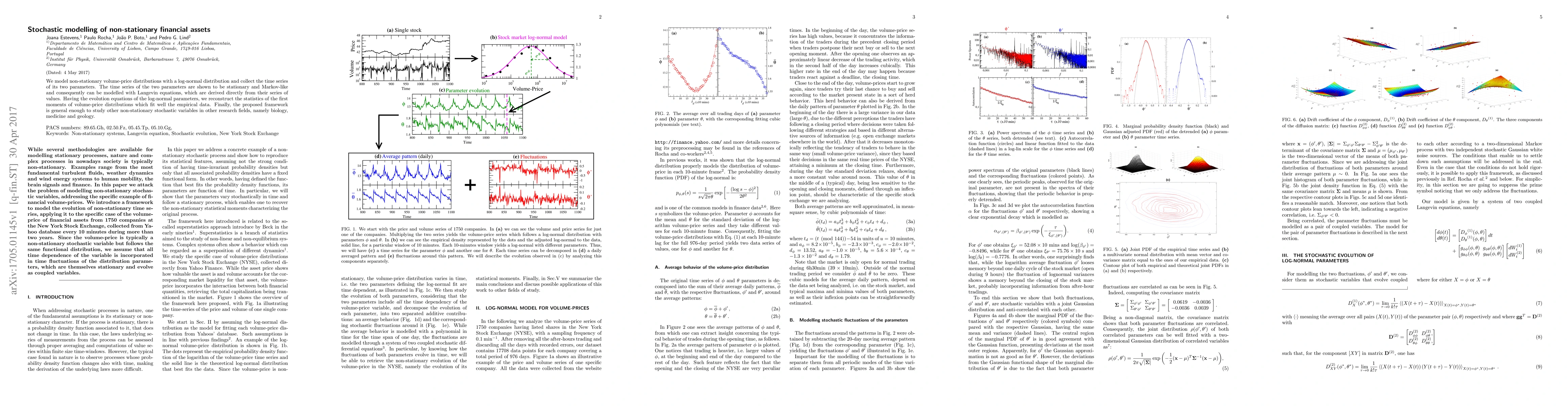 The research models non-stationary volume-price distributions with a log-normal distribution, analyzing time series of its parameters φ and θ. These time series are shown to be stationary and Markov-like, allowing for modelling with Langevin equations derived directly from their series of values.