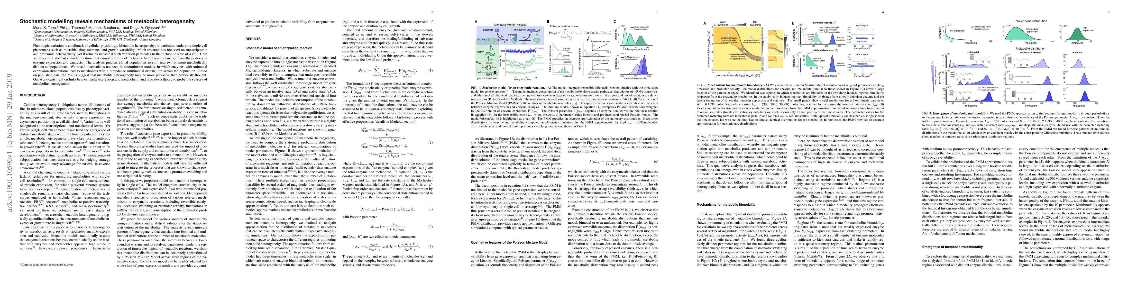 Phenotypic variation is a hallmark of cellular physiology. Metabolic heterogeneity, in particular, underpins single-cell phenomena such as microbial drug tolerance and growth variability. Much research has focussed on transcriptomic and proteomic heterogeneity, yet it remains unclear if such variation permeates to the metabolic state of a cell. Here we propose a stochastic model to show that complex forms of metabolic heterogeneity emerge from fluctuations in enzyme expression and catalysis. The analysis predicts clonal populations to split into two or more metabolically distinct subpopulations. We reveal mechanisms not seen in deterministic models, in which enzymes with unimodal expression distributions lead to metabolites with a bimodal or multimodal distribution across the population. Based on published data, the results suggest that metabolite heterogeneity may be more pervasive than previously thought. Our work casts light on links between gene expression and metabolism, and provides a theory to probe the sources of metabolite heterogeneity.