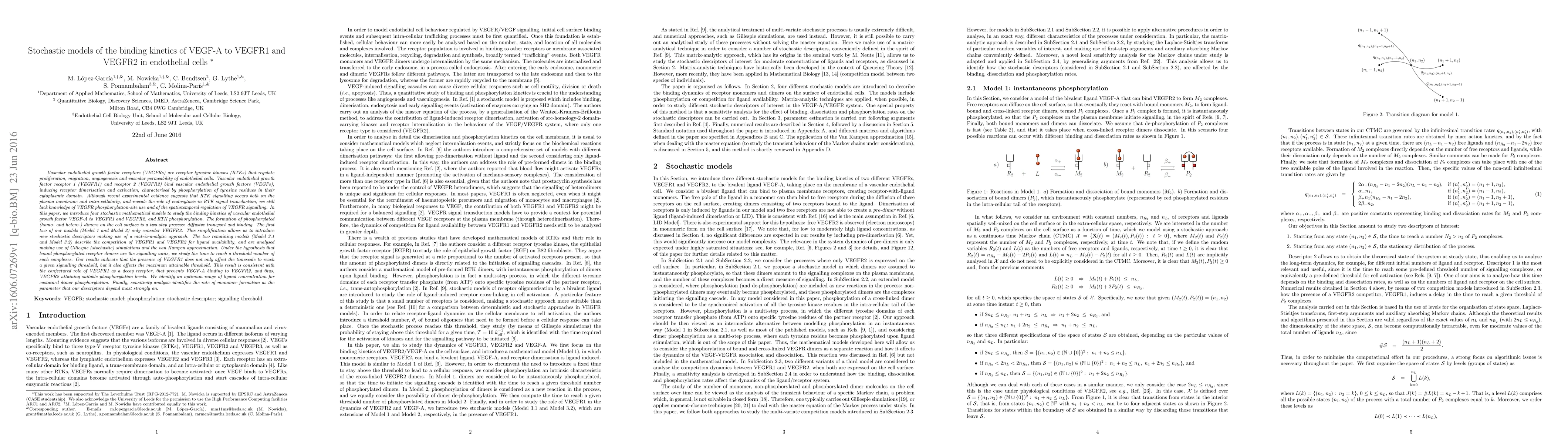 Researchers created four stochastic models to study how VEGF-A binds to VEGFR1 and VEGFR2 in endothelial cells, revealing that VEGFR1 can prevent VEGFR2 from getting phosphorylated, and an optimal ligand concentration for sustained signaling is found.