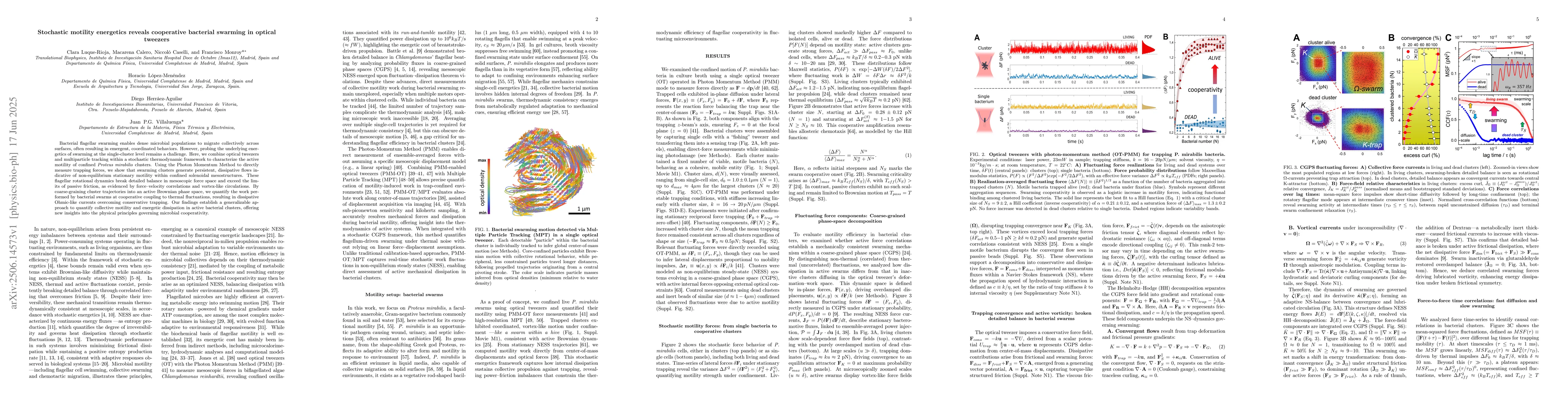 This study uses optical tweezers and stochastic thermodynamics to analyze Proteus mirabilis bacterial clusters, revealing their collective swarming behavior involves non-equilibrium motility and cooperative work against thermal fluctuations, offering insights into microbial cooperativity.