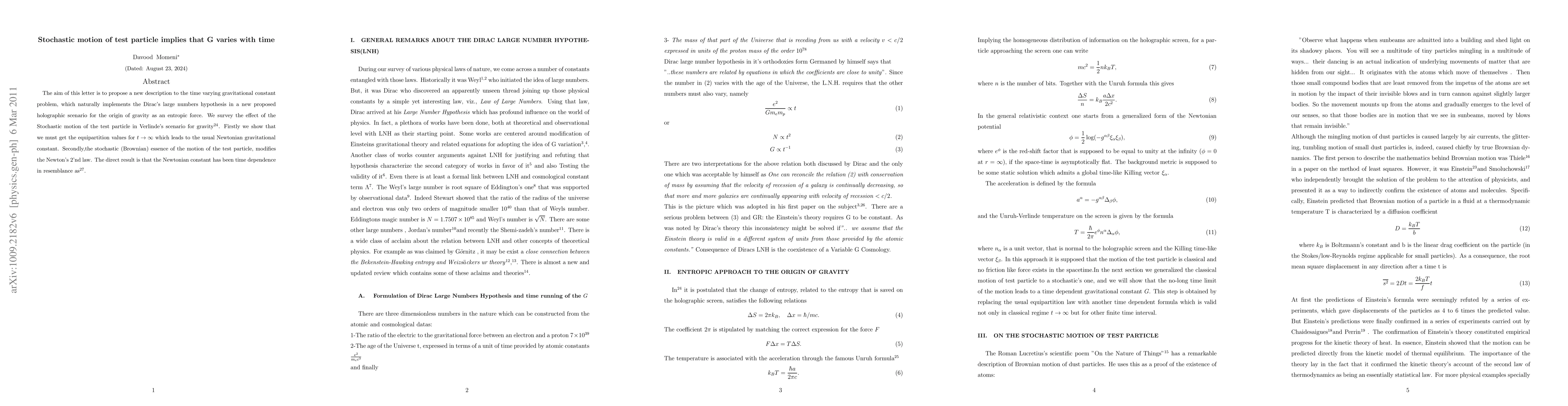 This paper proposes a new explanation for the time-varying gravitational constant problem, suggesting it's caused by stochastic motion in Verlinde's gravity scenario.