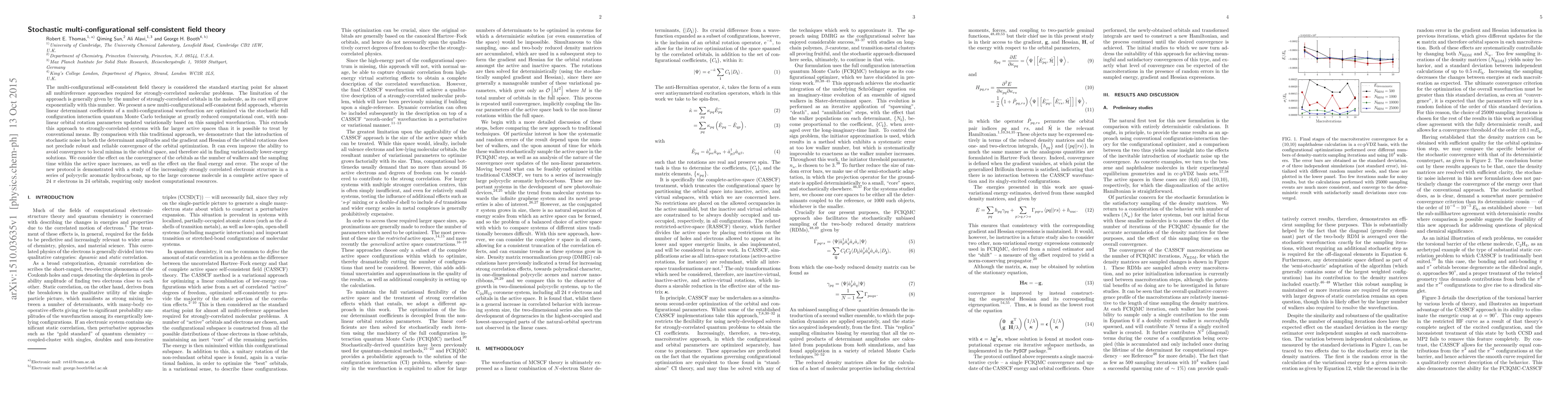 This paper introduces a stochastic multi-configurational self-consistent field theory that optimizes linear determinant coefficients via quantum Monte Carlo, significantly reducing computational costs for strongly-correlated molecular systems. The approach maintains robust convergence and can improve the search for lower-energy solutions, demonstrated through the study of polycyclic aromatic hydrocarbons.