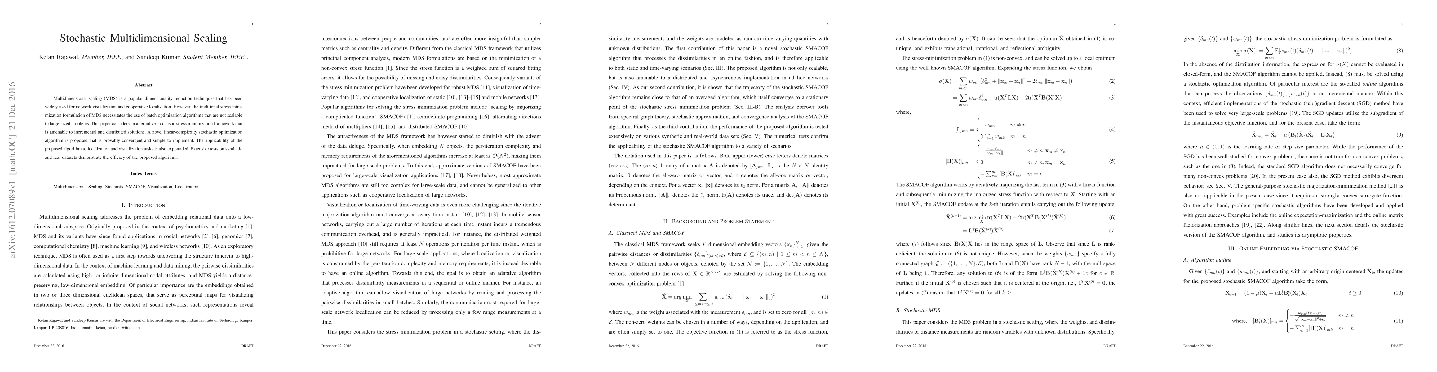 Researchers propose a new stochastic stress minimization framework for multidimensional scaling that is provably convergent and scalable to large-sized problems, demonstrating its efficacy on synthetic and real datasets.