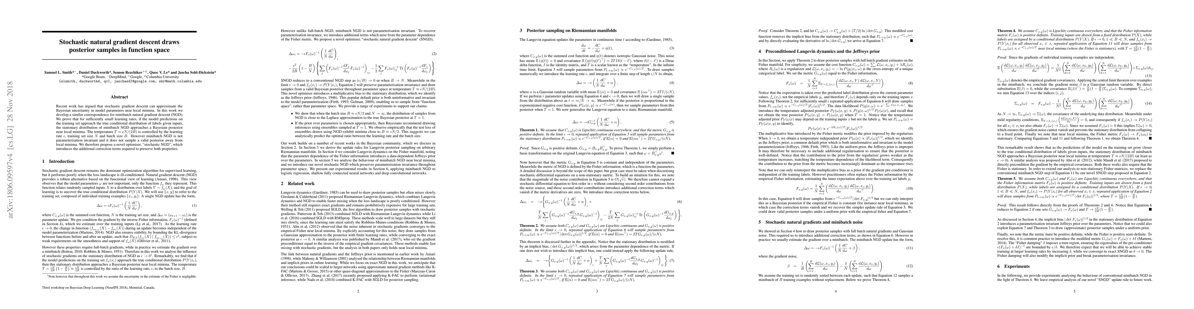 This paper demonstrates that minibatch natural gradient descent (NGD) approximates the Bayesian posterior near local minima when the learning rate is small. It introduces "stochastic NGD" to correct for its lack of parameterisation invariance and inability to sample a valid posterior away from local minima.