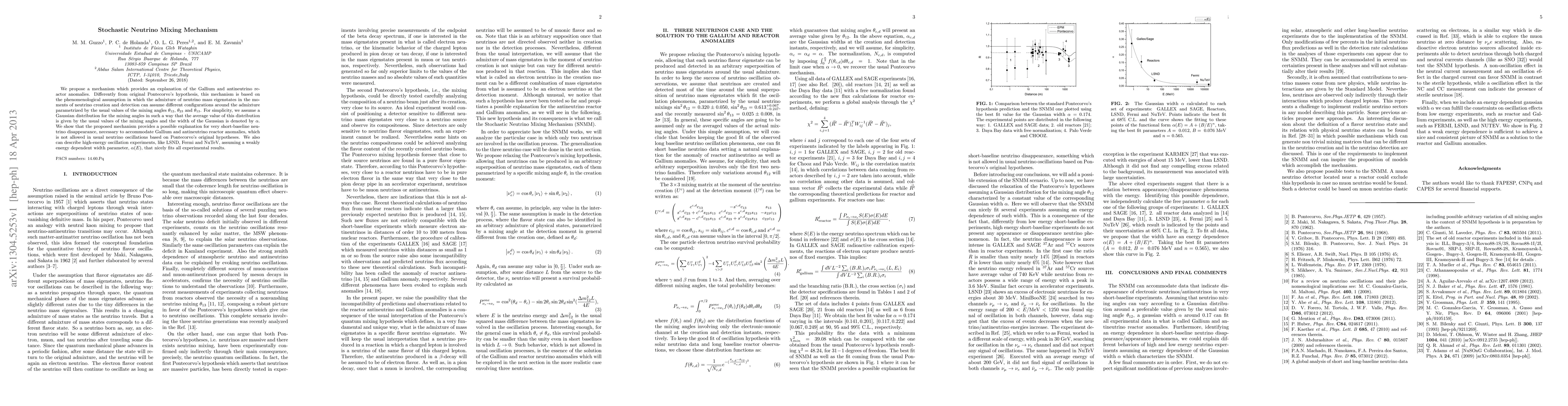 We propose a mechanism which provides an explanation of the Gallium and antineutrino reactor anomalies. Differently from original Pontecorvo's hypothesis, this mechanism is based on the phenomenological assumption in which the admixture of neutrino mass eigenstates in the moments of neutrino creation and detection can assume different configurations around the admixture parametrized by the usual values of the mixing angles $\theta_{12}$, $\theta_{23}$ and $\theta_{13}$. For simplicity, we assume a Gaussian distribution for the mixing angles in such a way that the average value of this distribution is given by the usual values of the mixing angles and the width of the Gaussian is denoted by $\alpha$. We show that the proposed mechanism provides a possible explanation for very short-baseline neutrino disappearance, necessary to accommodate Gallium and antineutrino reactor anomalies, which is not allowed in usual neutrino oscillations based on Pontecorvo's original hypotheses. We also can describe high-energy oscillation experiments, like LSND, Fermi and NuTeV, assuming a weakly energy dependent width parameter, $\alpha(E)$, that nicely fits all experimental results.
