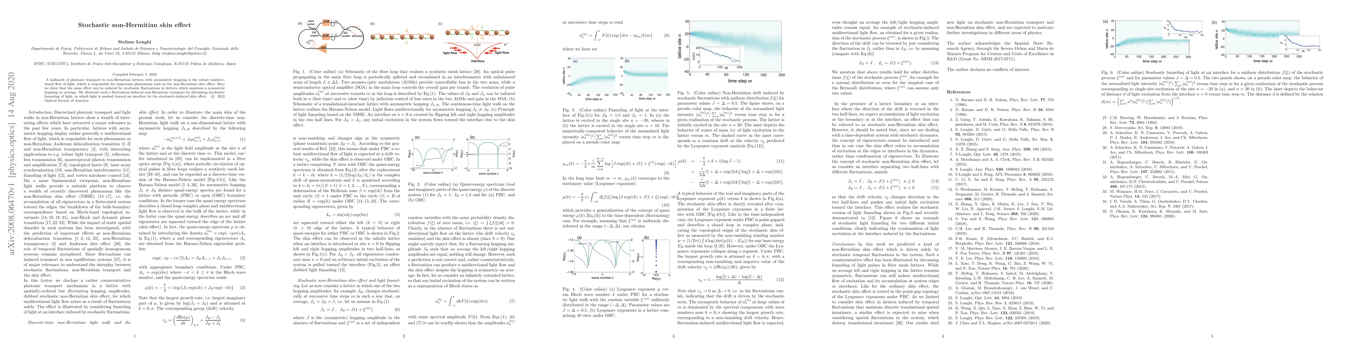 This research explores how stochastic fluctuations in symmetric lattices can induce a non-Hermitian skin effect, leading to unidirectional light transport and stochastic funneling of light toward an interface. The findings highlight the role of fluctuations in achieving non-Hermitian transport properties.