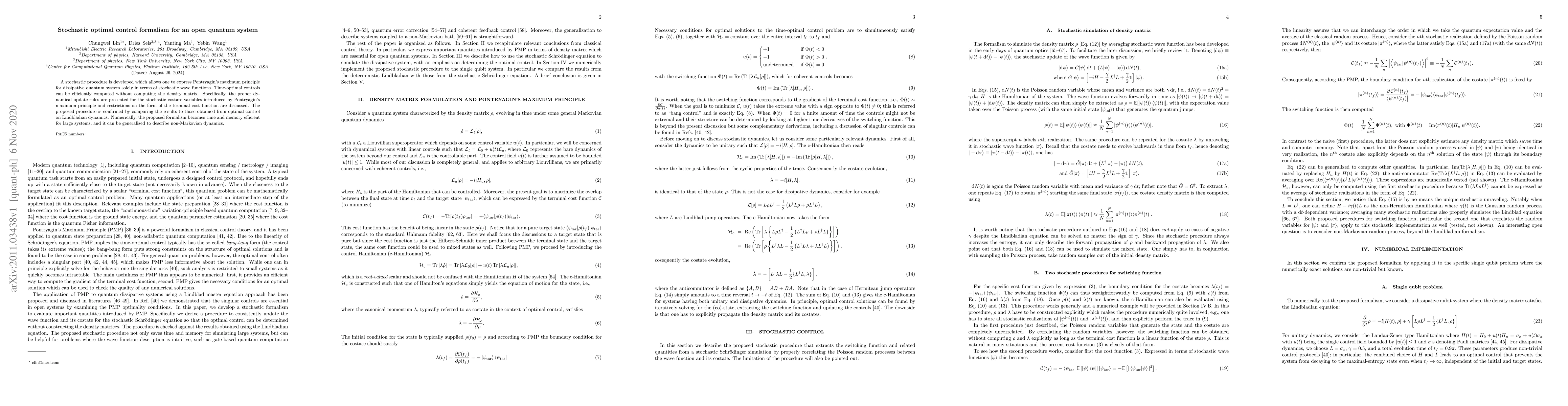 A new method for controlling quantum systems is developed that uses stochastic wave functions to optimize system performance without needing to compute the density matrix. This approach can efficiently handle large systems and non-Markovian dynamics.