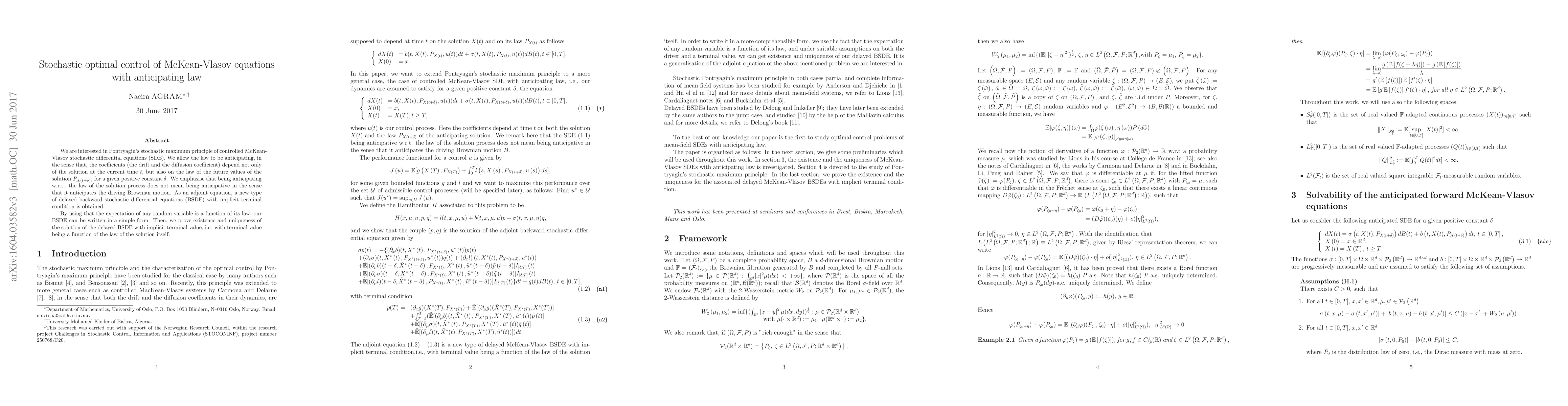 In this paper, we generalise Pontryagin's stochastic maximum principle to controlled McKean-Vlasov equations with anticipating law. The associated new type of delayed backward equations with implicit terminal condition is studied.