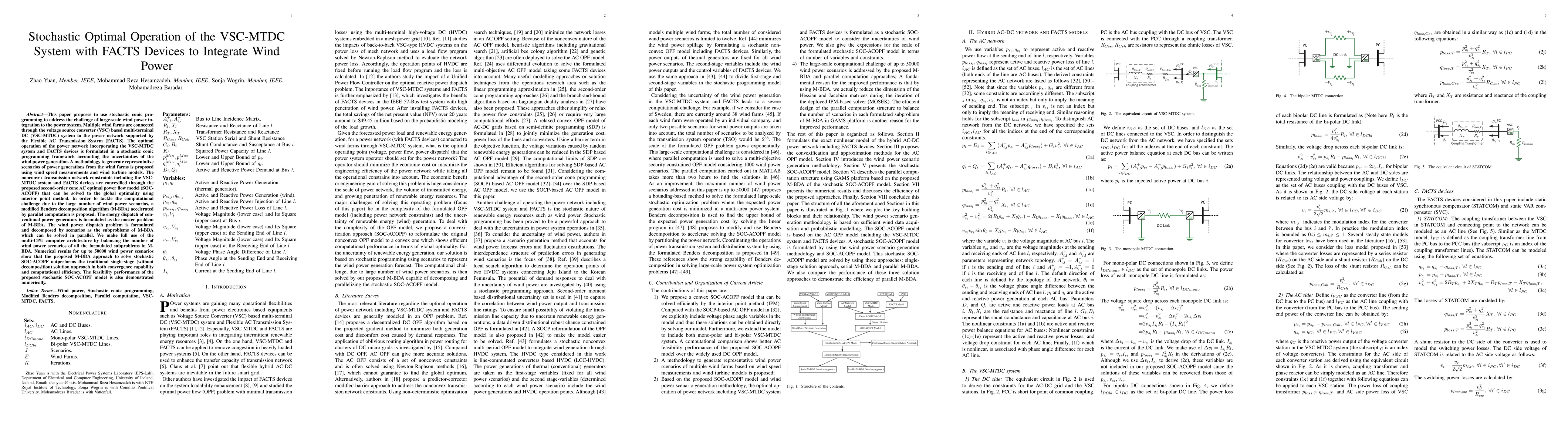 This paper proposes a stochastic conic programming approach to optimize the operation of a power system integrating large-scale wind power via a VSC-MTDC system and FACTS devices. The methodology employs a modified Benders decomposition algorithm for efficient computation, demonstrating superior performance over traditional single-stage solutions in handling up to 50,000 wind power scenarios.