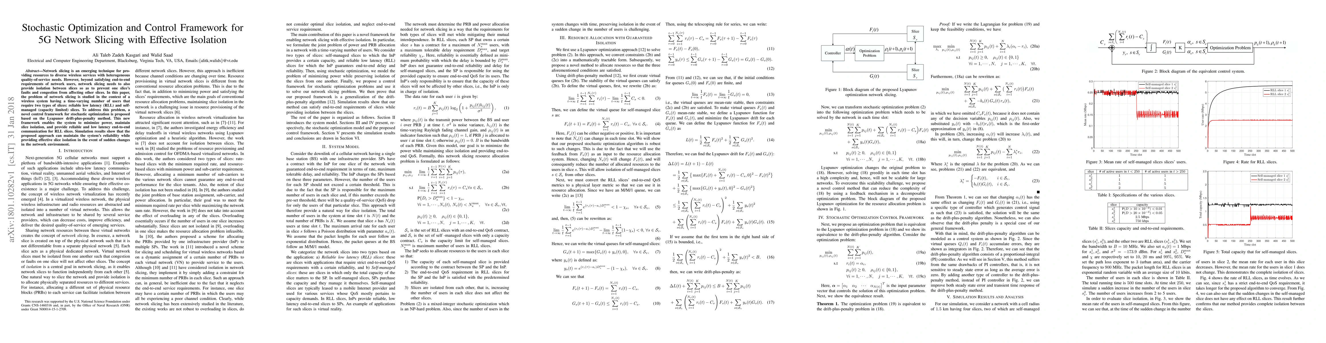 This paper proposes a stochastic optimization and control framework for 5G network slicing, focusing on maintaining effective isolation between slices while minimizing power consumption. The framework leverages the Lyapunov drift-plus-penalty method to achieve reliable and low-latency communication for critical slices amidst dynamic user demands.
