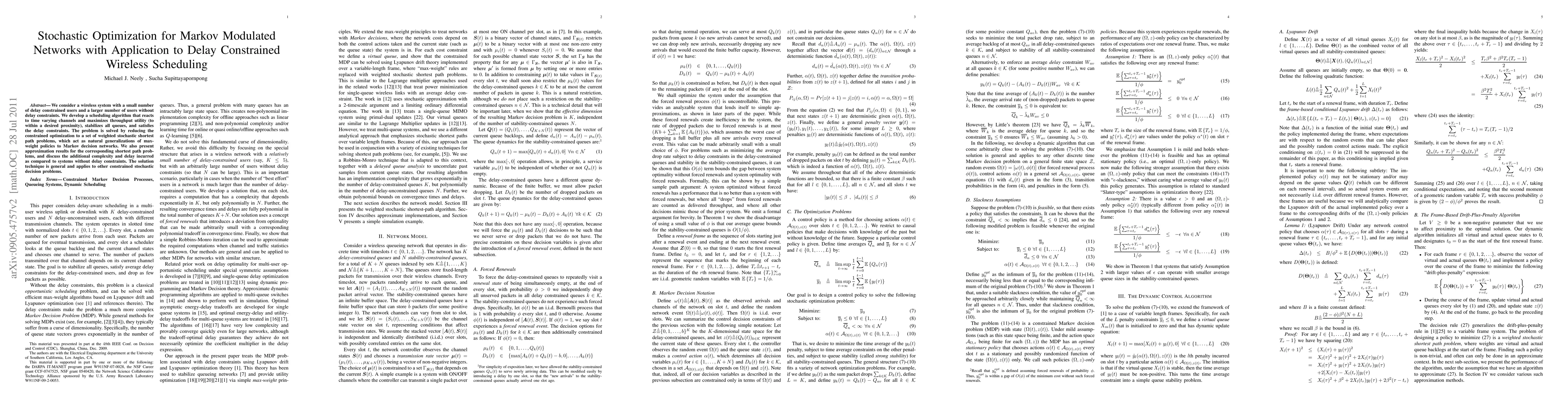 This paper develops a scheduling algorithm for a wireless network with delay-constrained and unconstrained users, optimizing throughput while satisfying delay constraints. The approach reduces the problem to weighted stochastic shortest path problems, providing a general solution technique applicable to other constrained stochastic decision problems.
