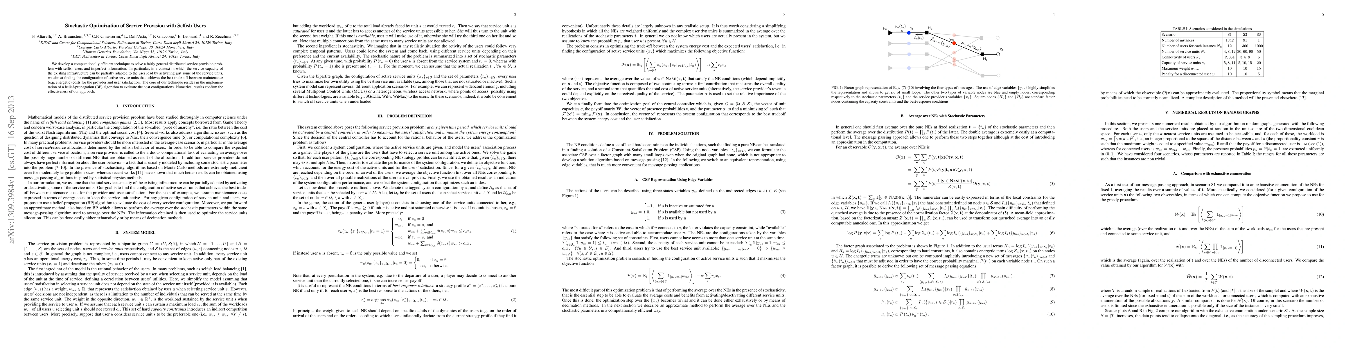 This paper presents a computationally efficient technique using belief-propagation to optimize service provision in a distributed system with selfish users and imperfect information, balancing provider costs and user satisfaction. Numerical results validate the effectiveness of the proposed approach.