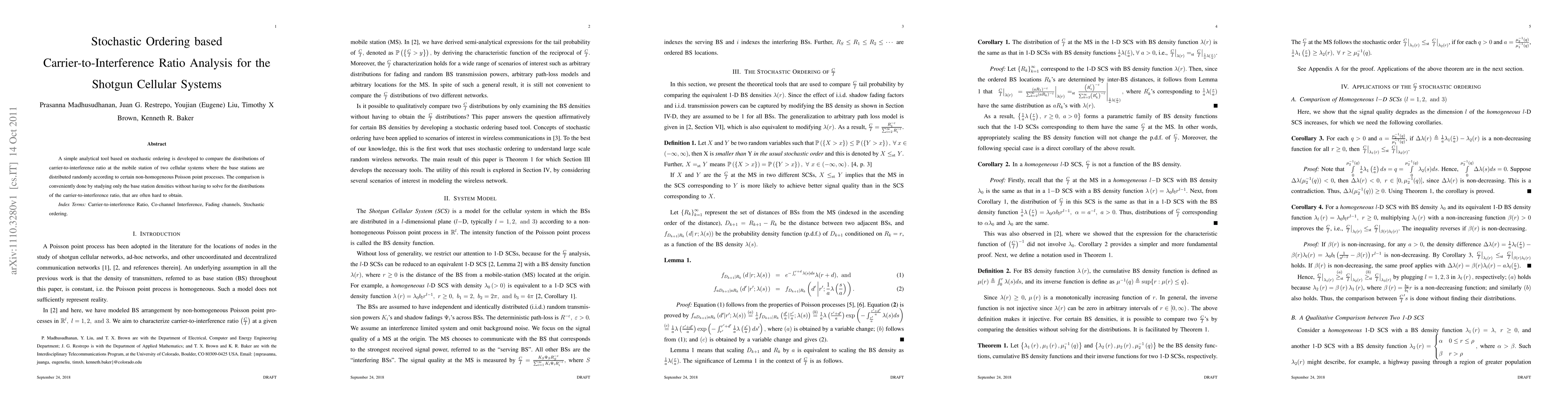 A simple analytical tool based on stochastic ordering is developed to compare the distributions of carrier-to-interference ratio at the mobile station of two cellular systems where the base stations are distributed randomly according to certain non-homogeneous Poisson point processes. The comparison is conveniently done by studying only the base station densities without having to solve for the distributions of the carrier-to-interference ratio, that are often hard to obtain.