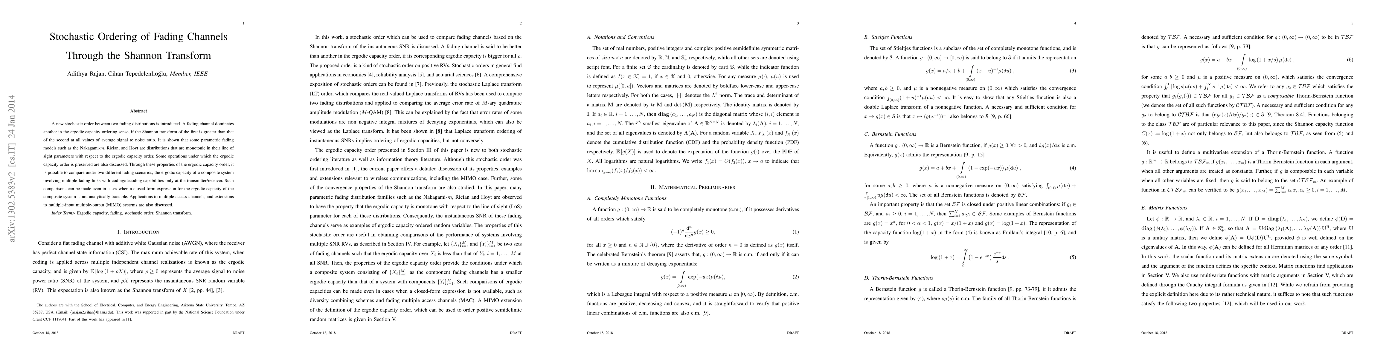 This paper introduces a new stochastic order for comparing fading channels based on the Shannon transform, showing that certain fading models like Nakagami-m, Rician, and Hoyt maintain monotonicity. It discusses operations preserving this order and its applications in comparing ergodic capacities of composite systems, even when closed-form expressions are not available.