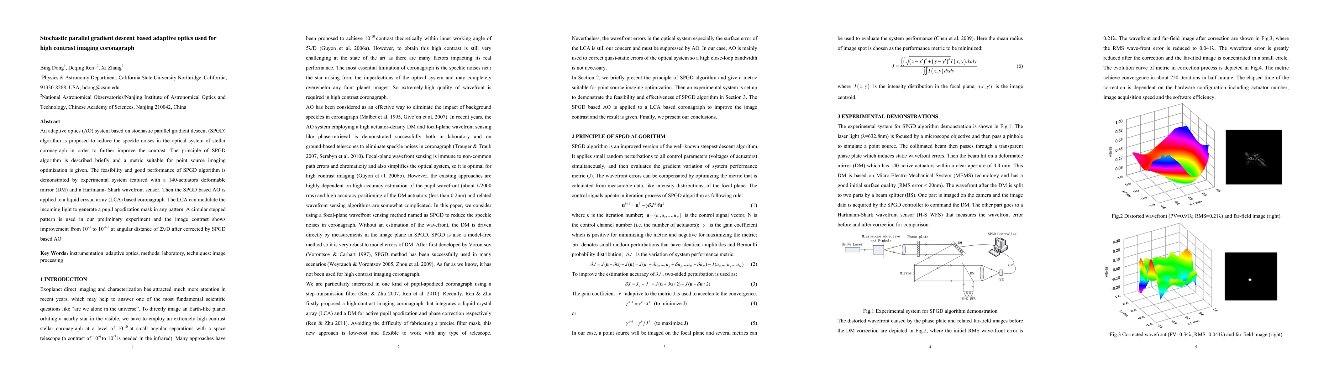 Researchers propose a new adaptive optics system using stochastic parallel gradient descent to improve contrast in high-resolution imaging of stellar coronagraphs, demonstrating improved image quality.