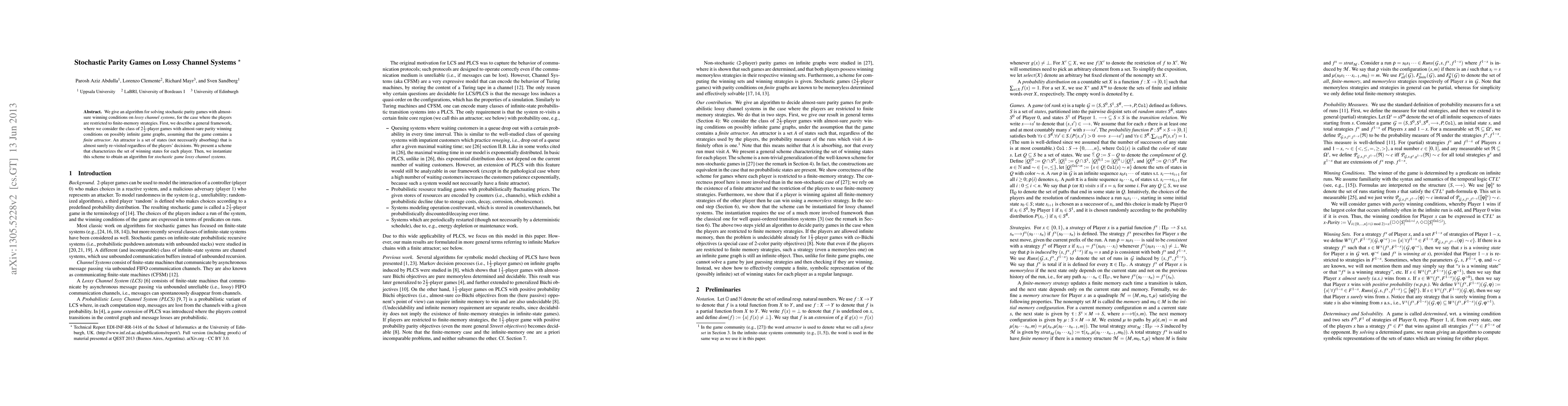 Researchers developed an algorithm to solve stochastic parity games with almost-sure winning conditions on lossy channel systems, focusing on finite-memory strategies and identifying a set of winning states for each player.