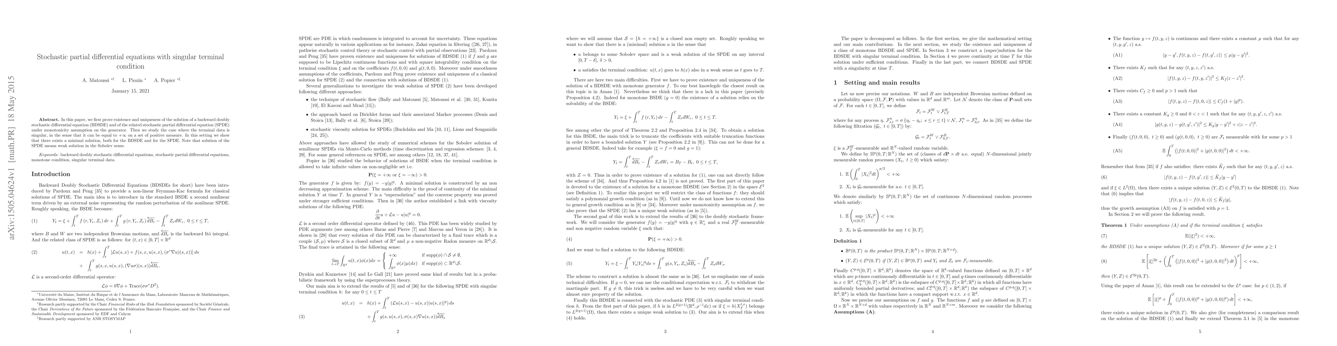 This paper proves existence and uniqueness for a backward doubly stochastic differential equation (BDSDE) and a related stochastic partial differential equation (SPDE) under monotonicity assumptions. It further explores cases where terminal data is singular, demonstrating the existence of minimal solutions for both the BDSDE and SPDE, with the SPDE solution being a weak solution in the Sobolev sense.