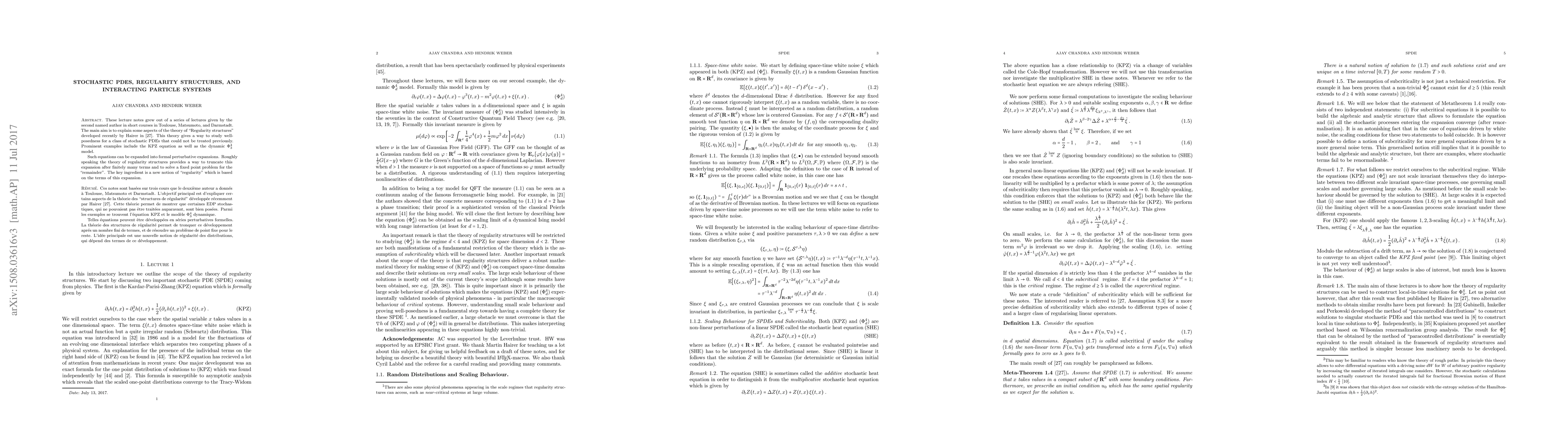 These lecture notes grew out of a series of lectures given by the second named author in short courses in Toulouse, Matsumoto, and Darmstadt. The main aim is to explain some aspects of the theory of "Regularity structures" developed recently by Hairer in arXiv:1303.5113 . This theory gives a way to study well-posedness for a class of stochastic PDEs that could not be treated previously. Prominent examples include the KPZ equation as well as the dynamic $\Phi^4_3$ model. Such equations can be expanded into formal perturbative expansions. Roughly speaking the theory of regularity structures provides a way to truncate this expansion after finitely many terms and to solve a fixed point problem for the "remainder". The key ingredient is a new notion of "regularity" which is based on the terms of this expansion.