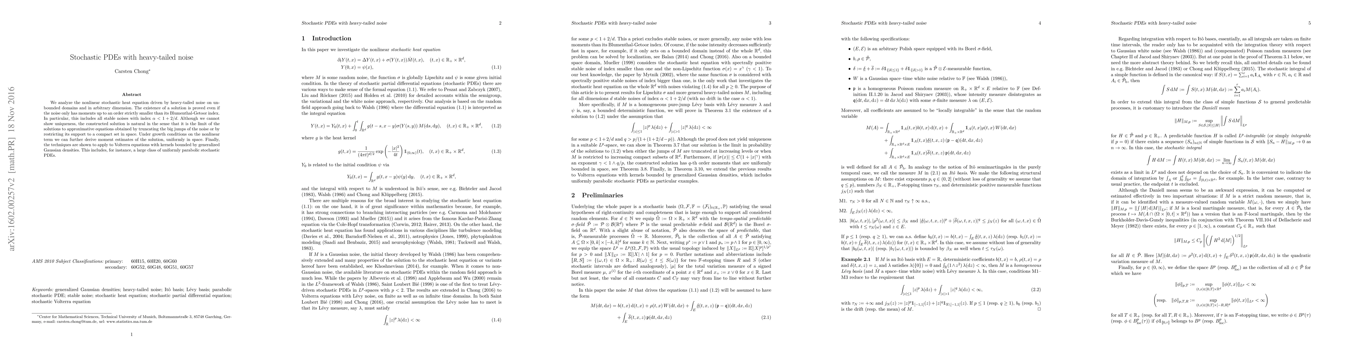 We analyze the nonlinear stochastic heat equation driven by heavy-tailed noise in free space and arbitrary dimension. The existence of a solution is proved even if the noise only has moments up to an order strictly smaller than its Blumenthal-Getoor index. In particular, this includes all stable noises with index $\alpha<1+2/d$. Although we cannot show uniqueness, the constructed solution is natural in the sense that it is the limit of the solutions to approximative equations obtained by truncating the big jumps of the noise or by restricting its support to a compact set in space. Under growth conditions on the nonlinear term we can further derive moment estimates of the solution, uniformly in space. Finally, the techniques are shown to apply to Volterra equations with kernels bounded by generalized Gaussian densities. This includes, for instance, a large class of uniformly parabolic stochastic PDEs.