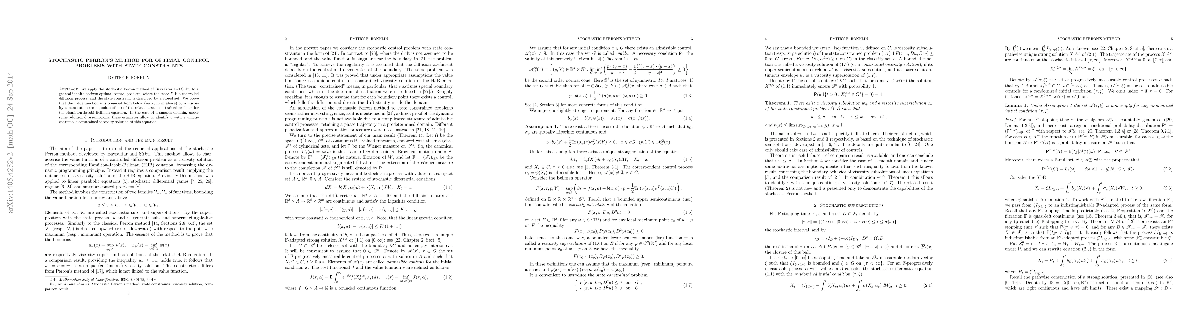 This research applies stochastic Perron's method to solve infinite horizon optimal control problems with state constraints, proving that the value function is bounded by related viscosity solutions of the Hamilton-Jacobi-Bellman equation.