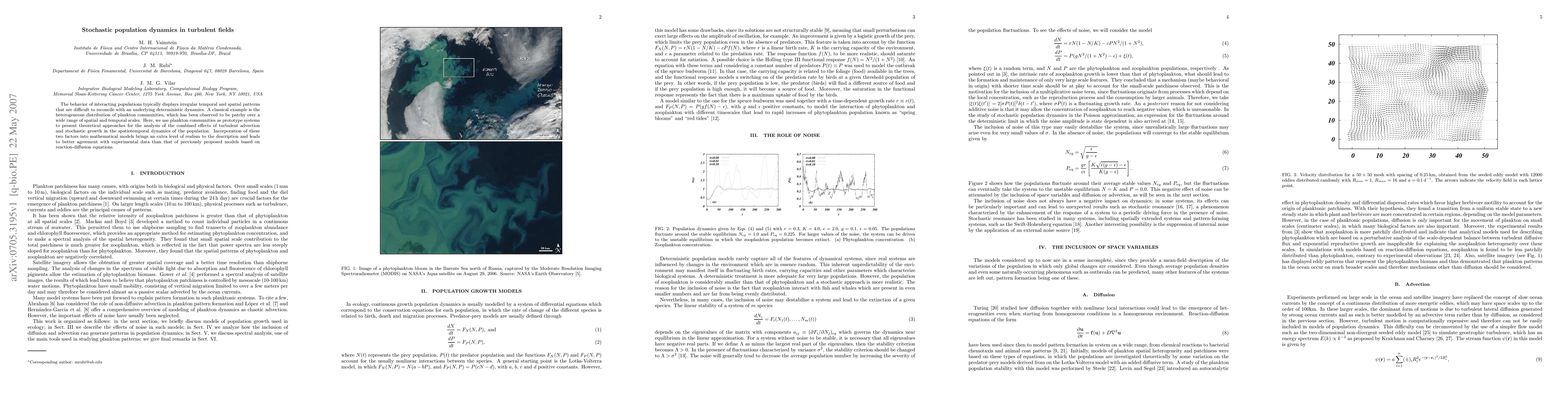 Researchers used plankton communities as a model to develop new mathematical models that better explain population dynamics in turbulent fields. These models incorporate both stochastic growth and turbulent advection, leading to more realistic results compared to previous reaction-diffusion models.