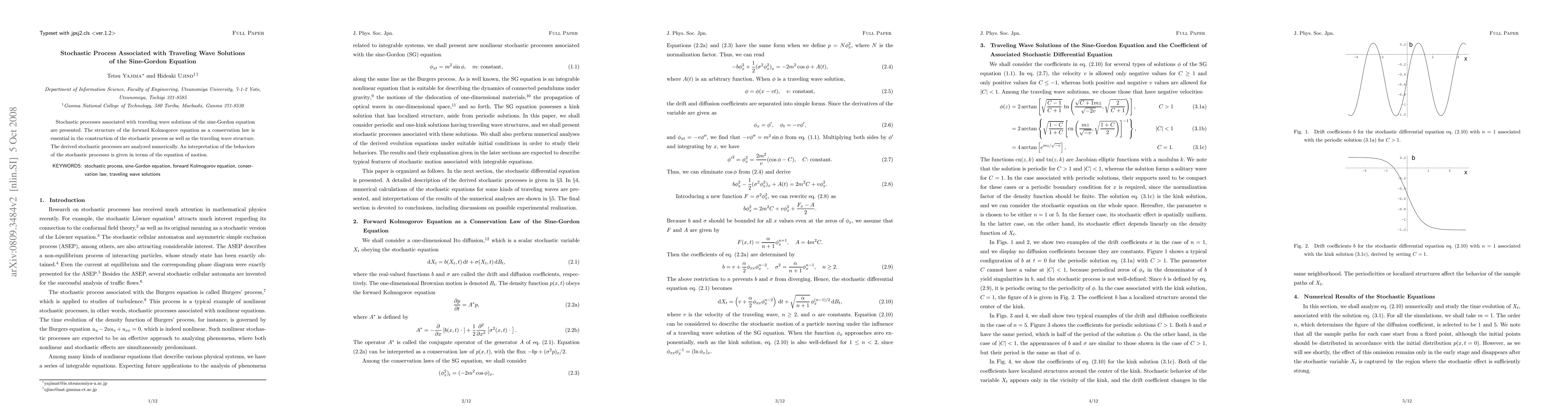 This research explores stochastic processes linked to traveling wave solutions of the sine-Gordon equation, emphasizing the importance of the forward Kolmogorov equation and traveling wave structure. Numerical analysis and interpretation of these stochastic processes are conducted to understand their dynamics in relation to the equation of motion.