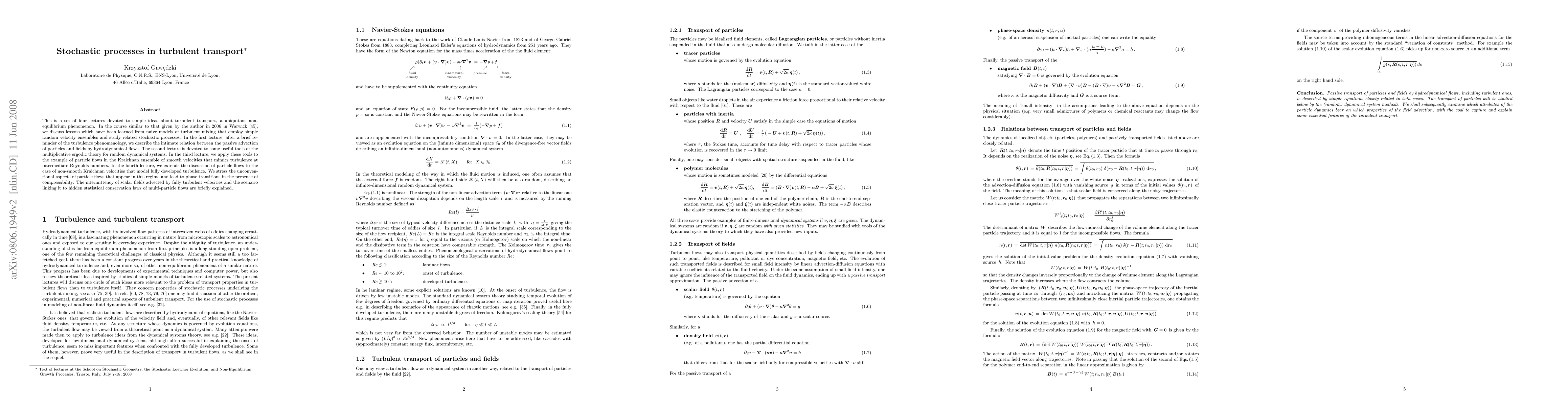 This is a set of four lectures devoted to simple ideas about turbulent transport, a ubiquitous non-equilibrium phenomenon. In the course similar to that given by the author in 2006 in Warwick [45], we discuss lessons which have been learned from naive models of turbulent mixing that employ simple random velocity ensembles and study related stochastic processes. In the first lecture, after a brief reminder of the turbulence phenomenology, we describe the intimate relation between the passive advection of particles and fields by hydrodynamical flows. The second lecture is devoted to some useful tools of the multiplicative ergodic theory for random dynamical systems. In the third lecture, we apply these tools to the example of particle flows in the Kraichnan ensemble of smooth velocities that mimics turbulence at intermediate Reynolds numbers. In the fourth lecture, we extends the discussion of particle flows to the case of non-smooth Kraichnan velocities that model fully developed turbulence. We stress the unconventional aspects of particle flows that appear in this regime and lead to phase transitions in the presence of compressibility. The intermittency of scalar fields advected by fully turbulent velocities and the scenario linking it to hidden statistical conservation laws of multi-particle flows are briefly explained.