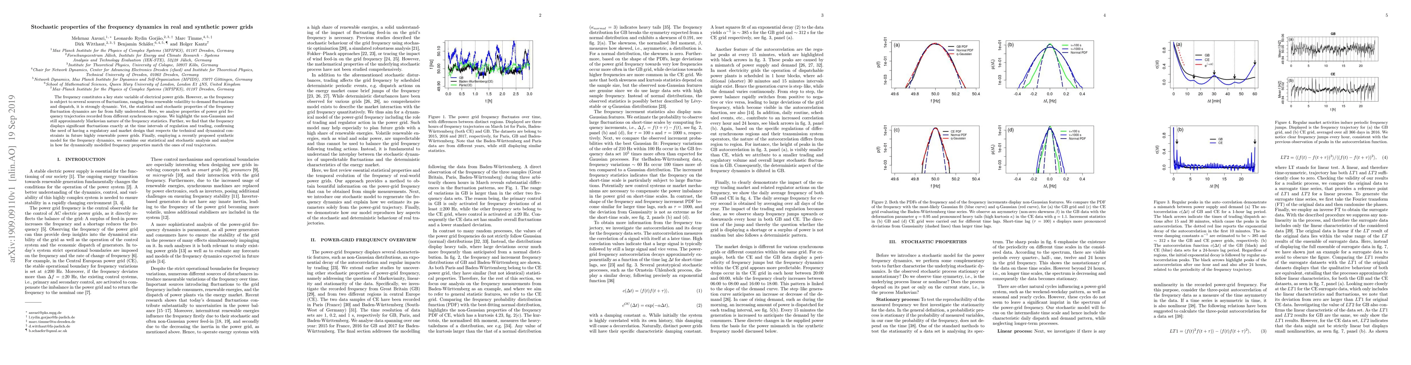 This study examines power grid frequency fluctuations, revealing their non-Gaussian, Markovian nature. It also finds significant frequency fluctuations at regulation and trading intervals, emphasizing the need for grid design respecting technical constraints. Using a synthetic frequency model, the research confirms that modeled dynamics align with real trajectories.