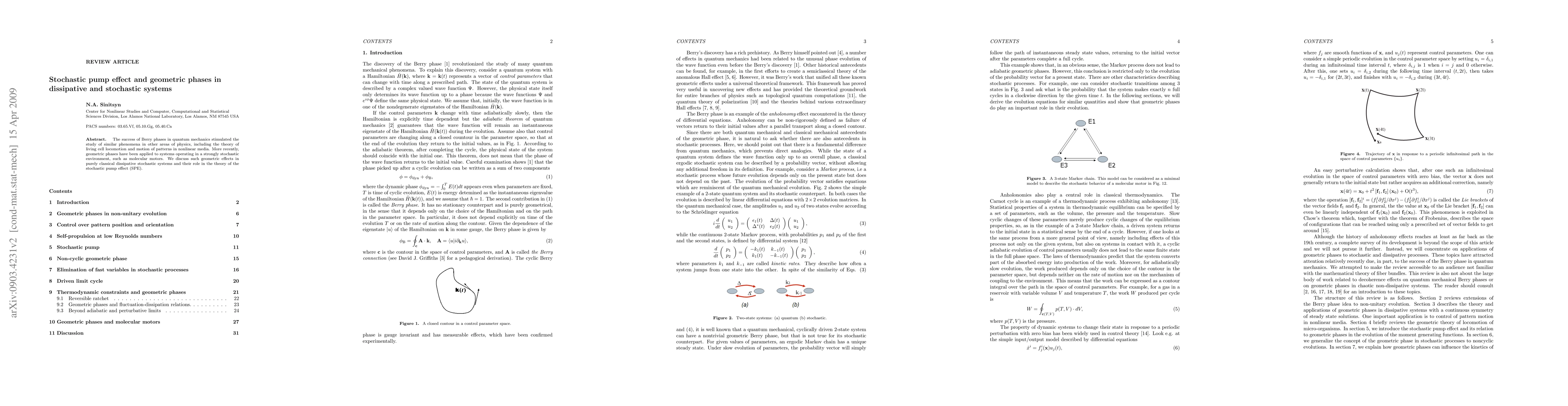 The success of Berry phases in quantum mechanics stimulated the study of similar phenomena in other areas of physics, including the theory of living cell locomotion and motion of patterns in nonlinear media. More recently, geometric phases have been applied to systems operating in a strongly stochastic environment, such as molecular motors. We discuss such geometric effects in purely classical dissipative stochastic systems and their role in the theory of the stochastic pump effect (SPE).
