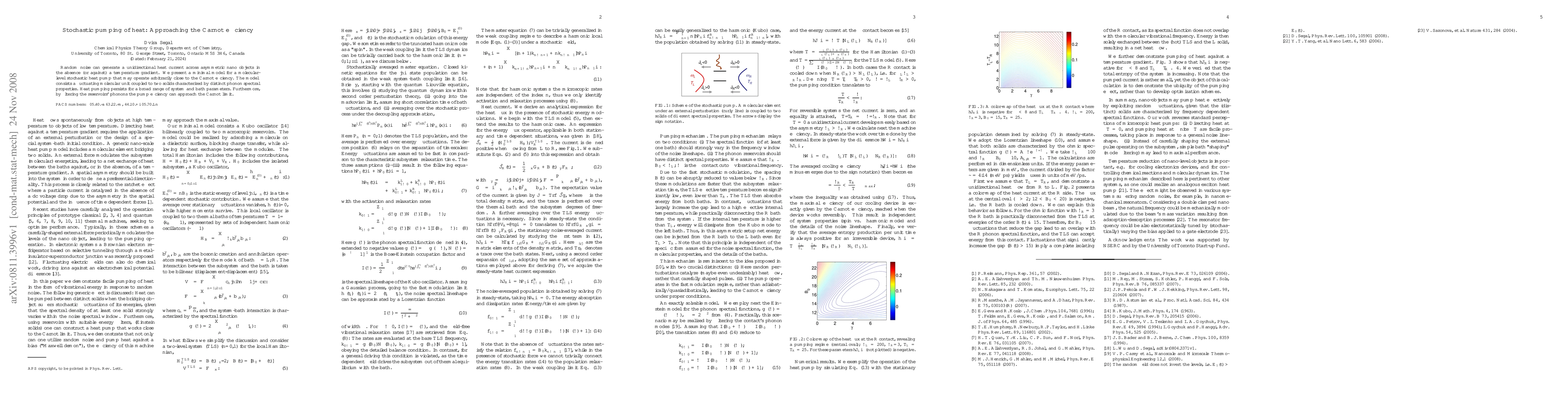 Random noise can generate a unidirectional heat current across asymmetric nano objects in the absence (or against) a temperature gradient. We present a minimal model for a molecular-level stochastic heat pump that may operate arbitrarily close to the Carnot efficiency. The model consists a fluctuating molecular unit coupled to two solids characterized by distinct phonon spectral properties. Heat pumping persists for a broad range of system and bath parameters. Furthermore, by filtering the reservoirs' phonons the pump efficiency can approach the Carnot limit.