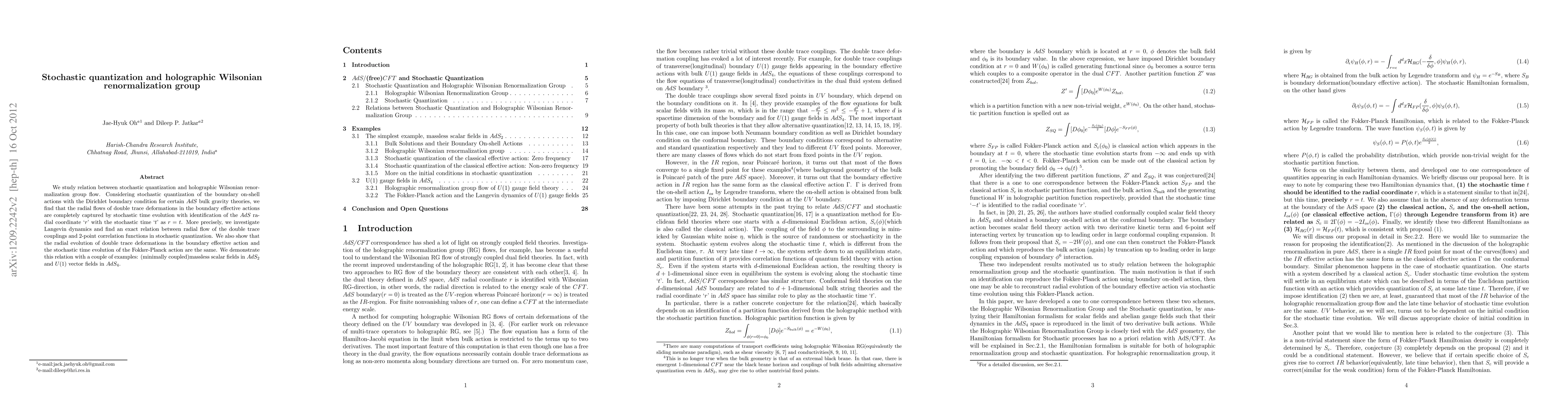 This paper explores the connection between stochastic quantization and holographic Wilsonian renormalization group flow, demonstrating that the radial flow in AdS bulk gravity theories can be captured by stochastic time evolution, where the AdS radial coordinate corresponds to stochastic time. The study reveals an exact relation between radial flow of double trace couplings and stochastic quantization's 2-point correlation functions, illustrated through examples of scalar fields in AdS_2 and U(1) vector fields in AdS_4.