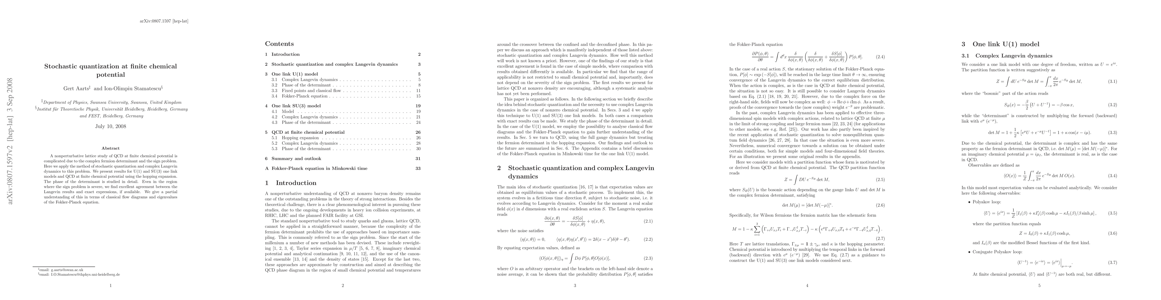 This paper employs stochastic quantization and complex Langevin dynamics to study QCD at finite chemical potential, addressing the sign problem and complex fermion determinant. Results for U(1) and SU(3) models show good agreement with exact expressions, offering insights into the phase of the determinant through classical flow diagrams and Fokker-Planck equation eigenvalues.