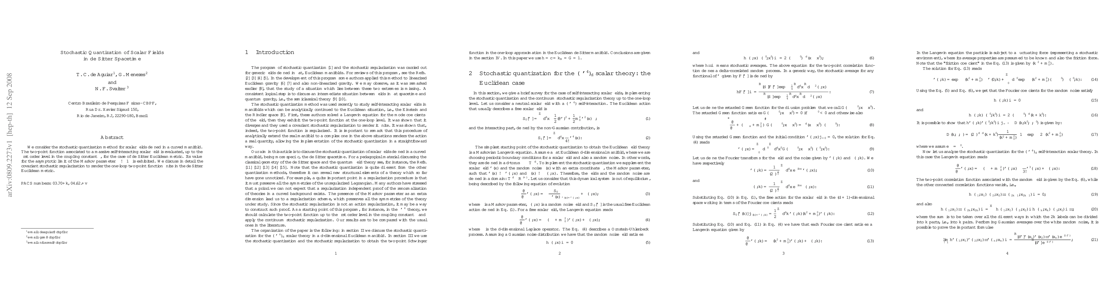 We consider the stochastic quantization method for scalar fields defined in a curved manifold. The two-point function associated to a massive self-interacting scalar field is evaluated, up to the first order level in the coupling constant $\lambda$, for the case of de Sitter Euclidean metric. Its value for the asymptotic limit of the Markov parameter $\tau\to\infty$ is exhibited. We discuss in detail the covariant stochastic regularization to render the one-loop two-point function finite in the de Sitter Euclidean metric.