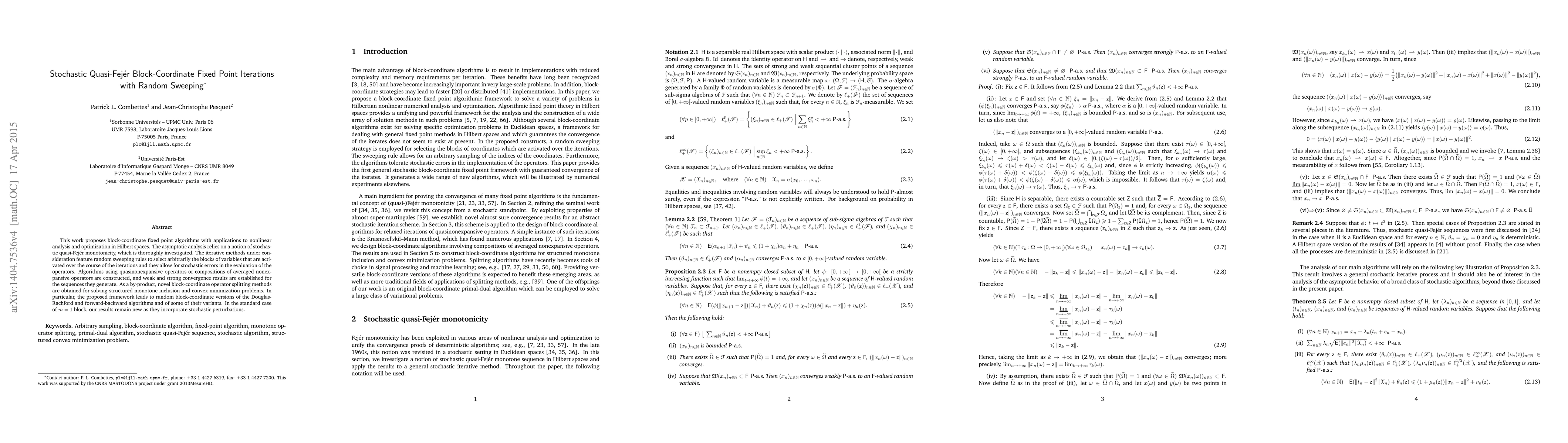 This work proposes block-coordinate fixed point algorithms with applications to nonlinear analysis and optimization in Hilbert spaces. The asymptotic analysis relies on a notion of stochastic quasi-Fej\'er monotonicity, which is thoroughly investigated. The iterative methods under consideration feature random sweeping rules to select arbitrarily the blocks of variables that are activated over the course of the iterations and they allow for stochastic errors in the evaluation of the operators. Algorithms using quasinonexpansive operators or compositions of averaged nonexpansive operators are constructed, and weak and strong convergence results are established for the sequences they generate. As a by-product, novel block-coordinate operator splitting methods are obtained for solving structured monotone inclusion and convex minimization problems. In particular, the proposed framework leads to random block-coordinate versions of the Douglas-Rachford and forward-backward algorithms and of some of their variants. In the standard case of $m=1$ block, our results remain new as they incorporate stochastic perturbations.