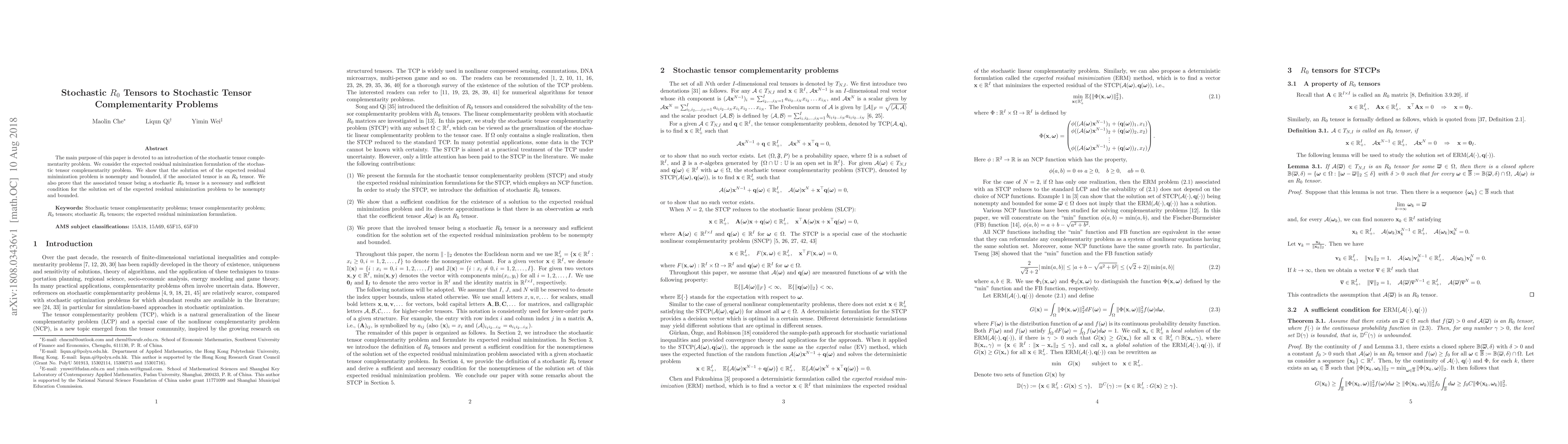 The main purpose of this paper is devoted to an introduction of the stochastic tensor complementarity problem. We consider the expected residual minimization formulation of the stochastic tensor complementarity problem. We show that the solution set of the expected residual minimization problem is nonempty and bounded, if the associated tensor is an $R_0$ tensor. We also prove that the associated tensor being a stochastic $R_0$ tensor is a necessary and sufficient condition for the solution set of the expected residual minimization problem to be nonempty and bounded.