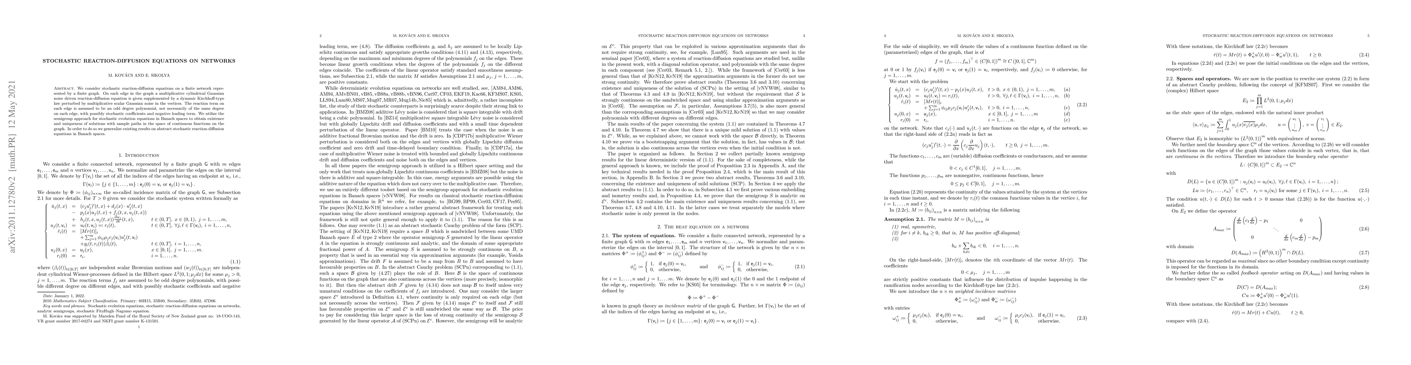 The development of a new mathematical framework for analyzing stochastic reaction-diffusion equations on networks, which provides a unified approach to understanding the behavior of these systems.