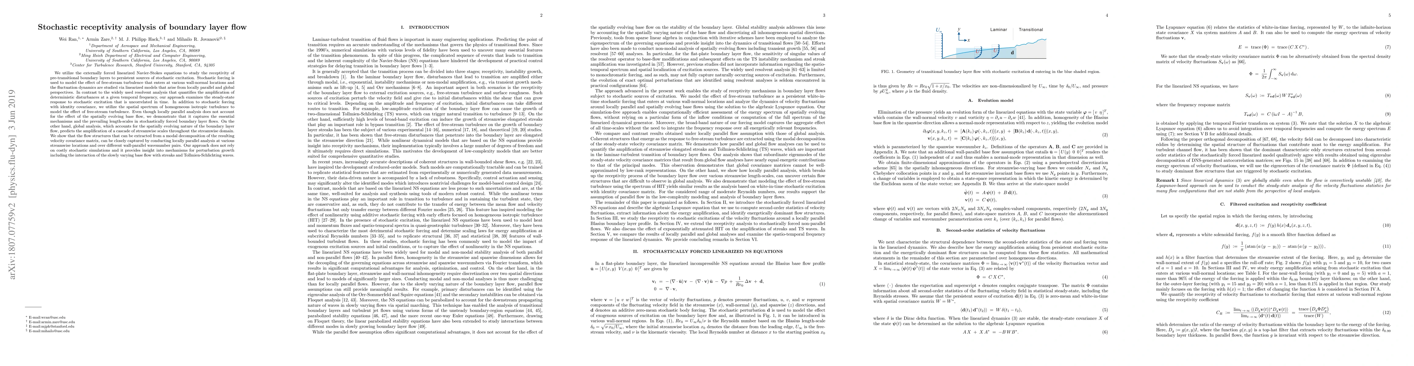 This research paper analyzes how boundary layer flows respond to stochastic excitation from free-stream turbulence, finding that locally parallel analysis captures key mechanisms while global analysis predicts amplification of streamwise scales.