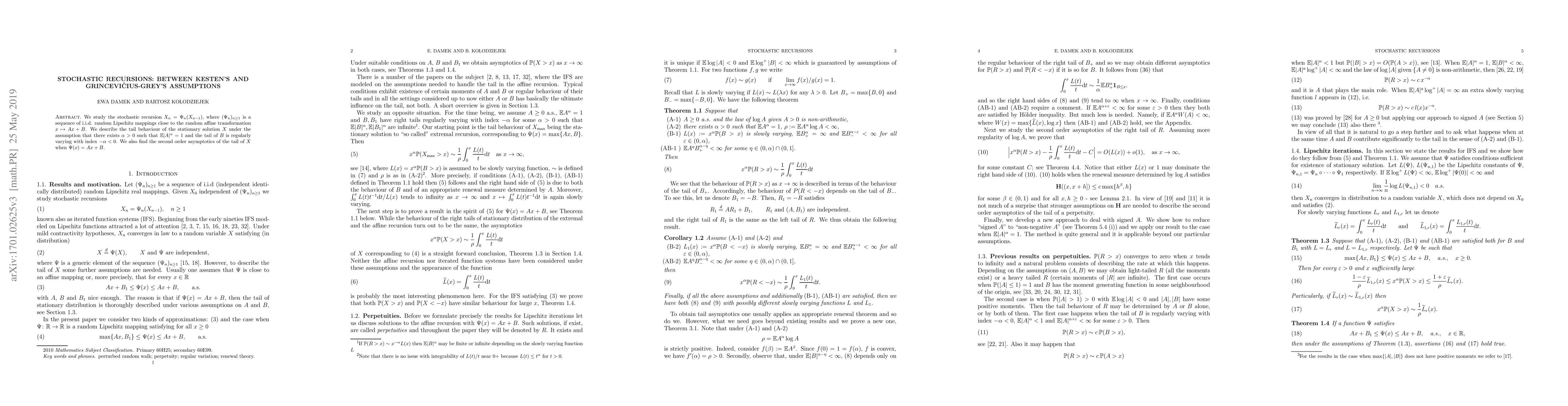 This paper studies a stochastic recursion with random Lipschitz mappings, finding its tail behavior under certain assumptions and providing second-order asymptotics when the mappings are affine transformations.