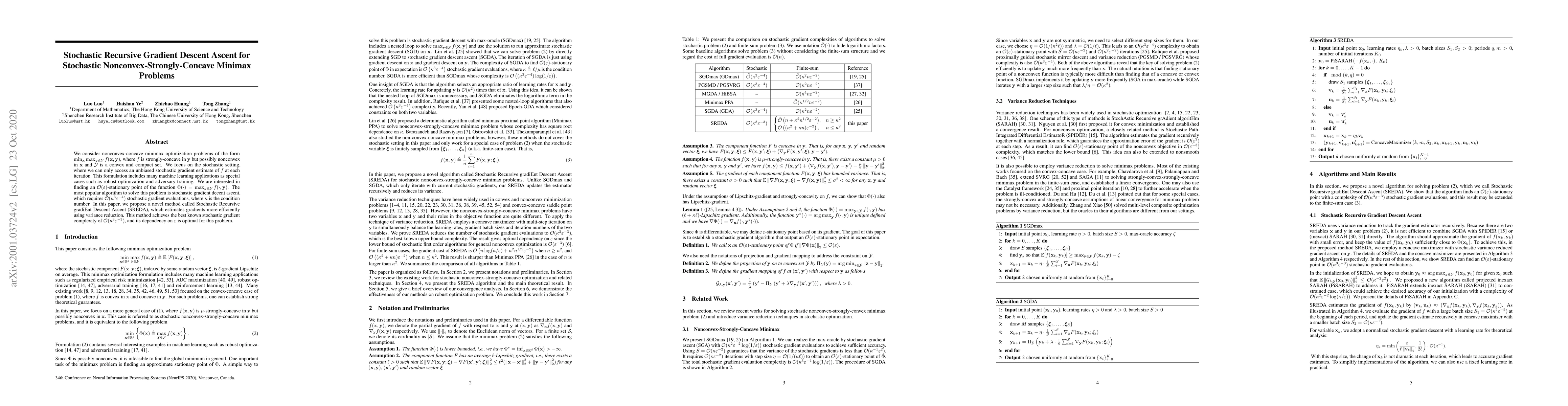 This paper proposes a novel Stochastic Recursive Gradient Descent Ascent (SREDA) method to solve nonconvex-strongly-concave minimax optimization problems, achieving optimal ${\mathcal O}(\kappa^3\varepsilon^{-3})$ stochastic gradient complexity compared to the traditional ${\mathcal O}(\kappa^3\varepsilon^{-4})$ complexity.
