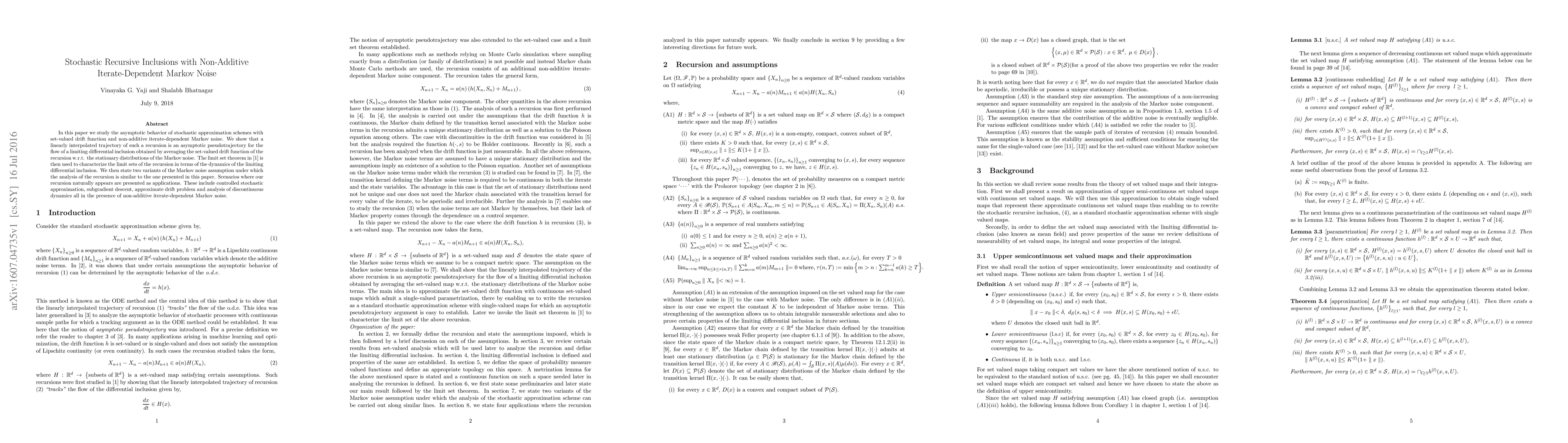 This paper investigates the asymptotic behavior of stochastic approximation schemes with set-valued drift and non-additive iterate-dependent Markov noise. It demonstrates that a linearly interpolated trajectory approximates the flow of a limiting differential inclusion, and applies limit set theorems to characterize the recursion's limit sets.