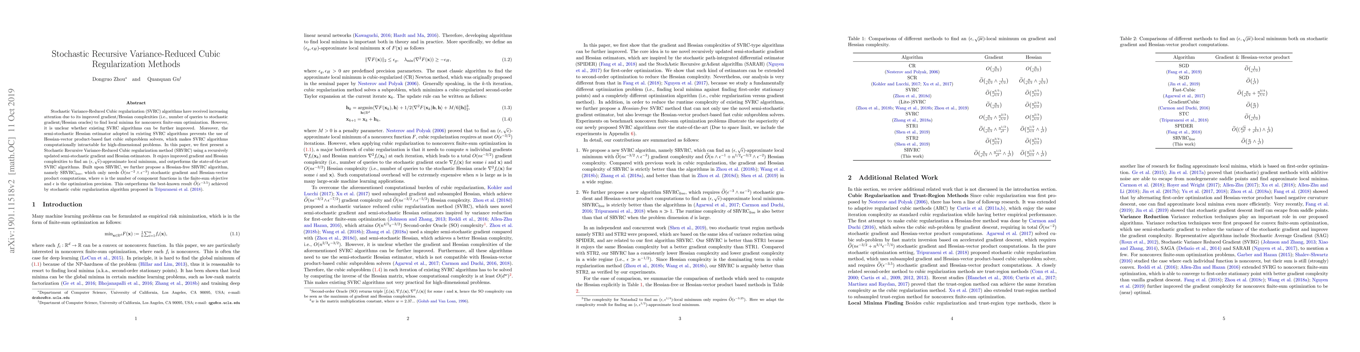 This paper introduces a Stochastic Recursive Variance-Reduced Cubic regularization method (SRVRC) that improves gradient and Hessian complexities for nonconvex optimization. It also proposes a Hessian-free SRVRC algorithm (SRVRC$_{\text{free}}$) that achieves better runtime complexity compared to existing methods.