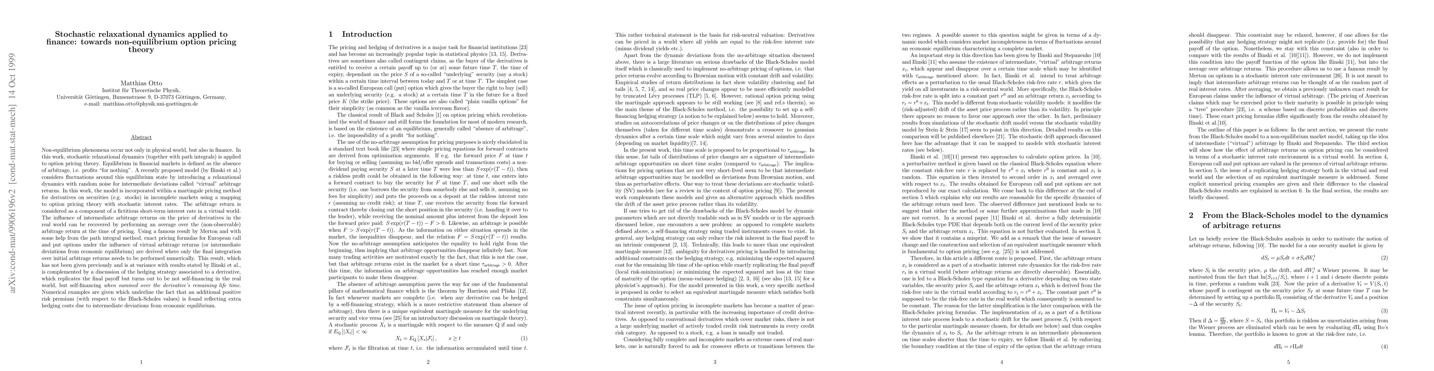 Researchers apply stochastic relaxational dynamics to finance, deriving exact pricing formulas for European call and put options with intermediate deviations from economic equilibrium. This approach reveals an additional positive risk premium reflecting extra hedging costs due to these deviations.
