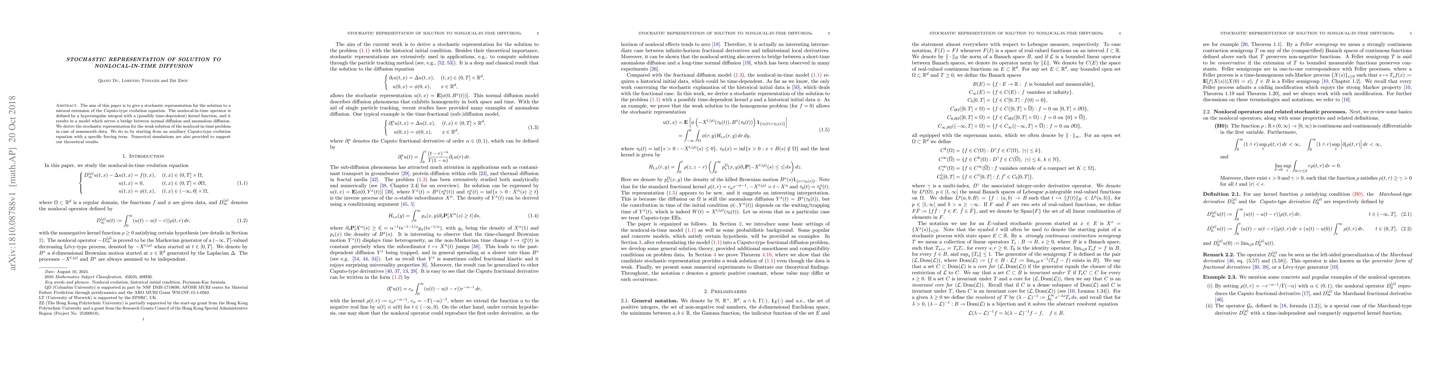 This paper presents a stochastic representation for the solution of a nonlocal-in-time diffusion equation, extending the Caputo-type evolution equation. It bridges normal and anomalous diffusion through a hypersingular integral operator, and provides numerical simulations to validate the theoretical findings.