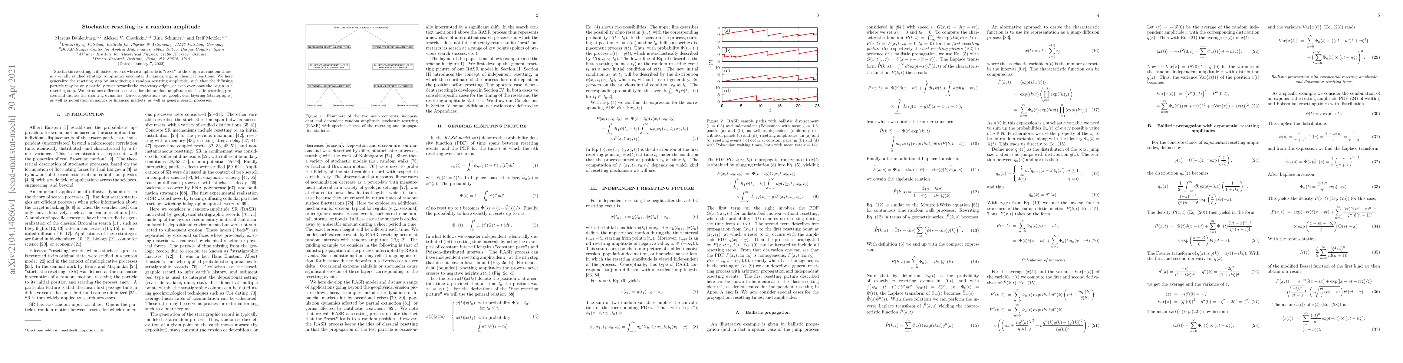 Stochastic resetting, a diffusive process whose amplitude is "reset" to the origin at random times, is a vividly studied strategy to optimize encounter dynamics, e.g., in chemical reactions. We here generalize the resetting step by introducing a random resetting amplitude, such that the diffusing particle may be only partially reset towards the trajectory origin, or even overshoot the origin in a resetting step. We introduce different scenarios for the random-amplitude stochastic resetting process and discuss the resulting dynamics. Direct applications are geophysical layering (stratigraphy) as well as population dynamics or financial markets, as well as generic search processes.