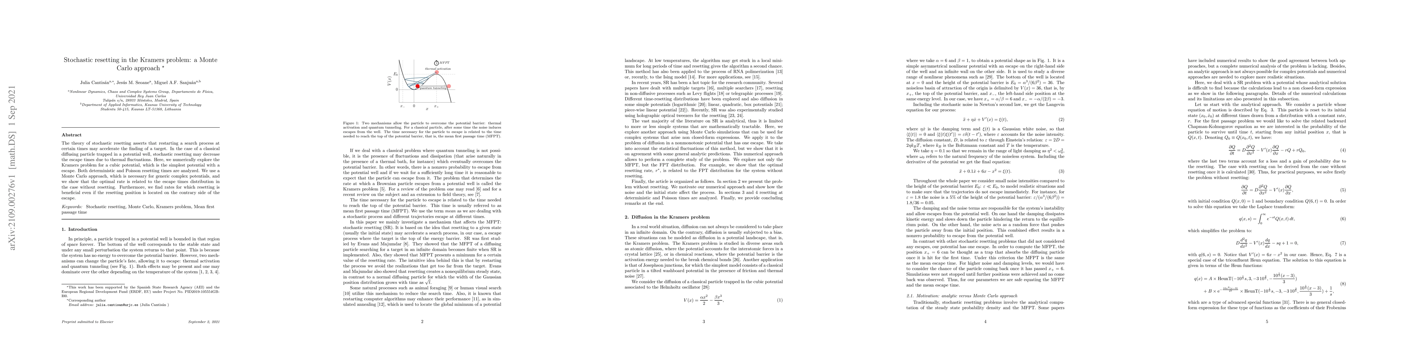 This work presents novel insights into the effects of stochastic resetting on diffusion processes, particularly in the context of Kramers' theory and its applications to non-equilibrium dynamics.