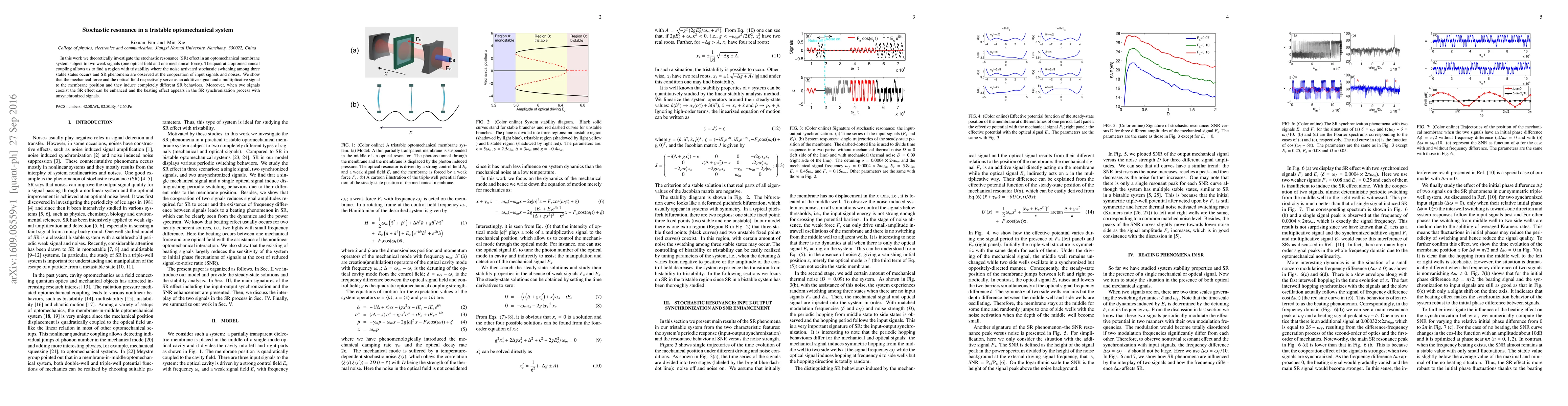 This paper investigates stochastic resonance in a tristable optomechanical system, demonstrating that noise-activated switching among three stable states can enhance the system's response to weak signals. The study reveals distinct SR behaviors when mechanical force and optical field act as additive and multiplicative signals, respectively, and highlights the beating effect in SR synchronization with unsynchronized signals.